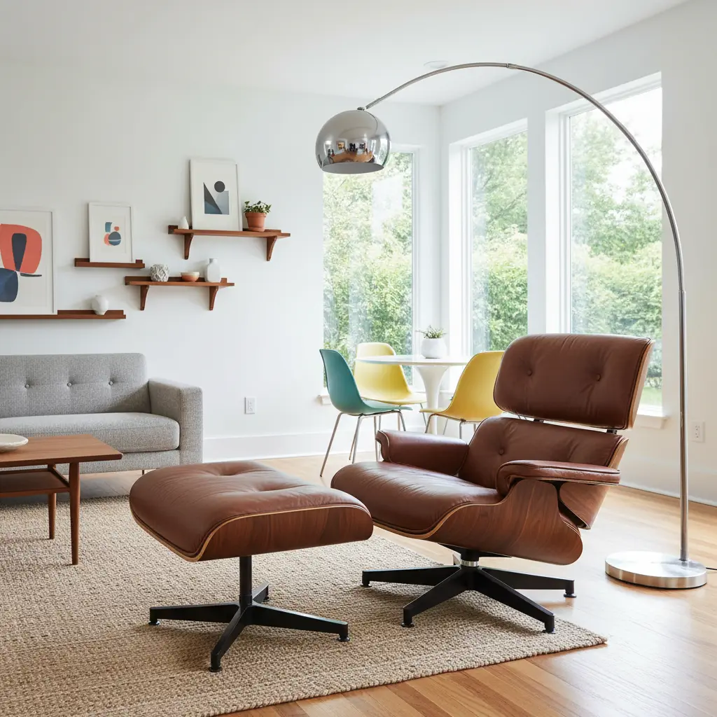 Associez votre chaise Eames à un canapé bas et une table basse géométrique. Ajoutez une lampe rétro pour un coin lecture. Utilisez des coussins en orange brûlé ou vert avocat. Cela crée une ambiance chaleureuse et cohérente. Un coup de pouce simple pour un style mid-century réussi.
